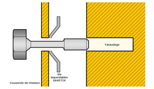 SAVETIX® en se déformant a obturé une partie du rayon intérieur du trou taraudé si bien que le filet de la vis ne peut plus le traverser en sens inverse.